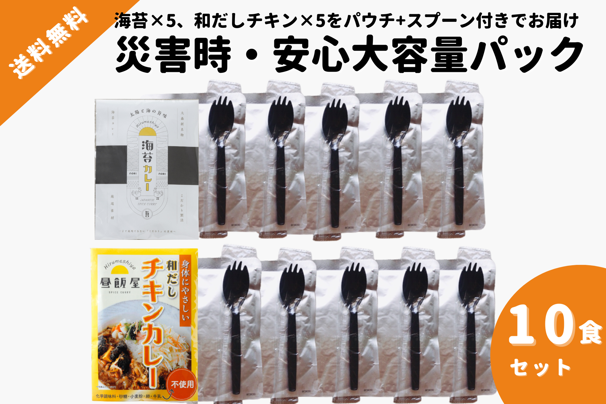 【防災】災害時・安心大容量パック10食セット(海苔5個、和だしチキン5個)
